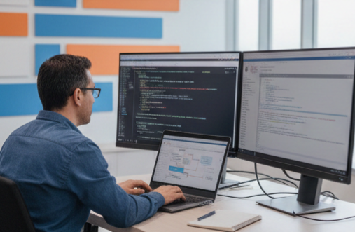 Diseñamos software escalable que se adapta a su flujo de trabajo, no al revés. Desde aplicaciones web hasta plataformas de gestión interna, creamos herramientas que automatizan sus procesos y eliminan cuellos de botella.